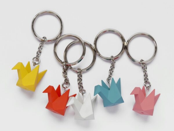 「折り鶴」の複雑なフォルムをプラスチックで立体的に表現。