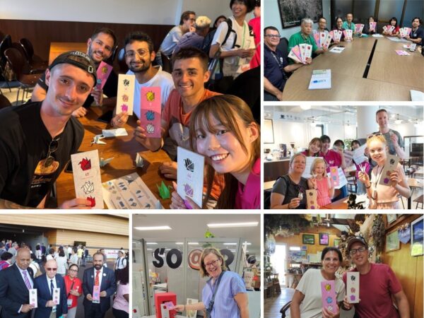 「折り鶴ビーズポストカード」を全国各地の学校や企業、団体などへ配布、