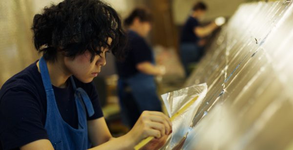 クリエイターの方が箔を貼る作業は、とにかく早くて美しい。